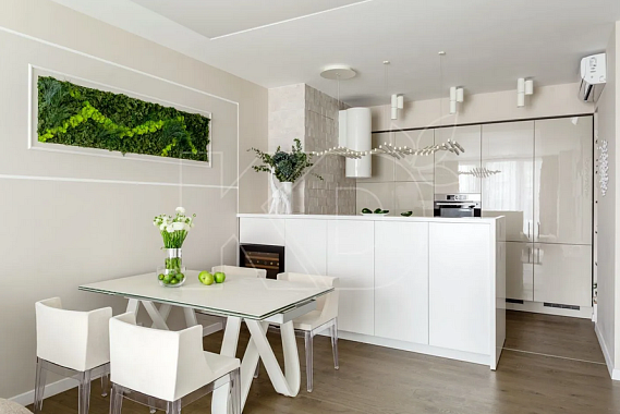 Белая глянцевая кухня в интерьере