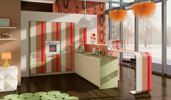 Динамичные и креативные личности просто нуждаются в оригинальных решениях, которые будут стимулировать их творческую деятельность и активность. Таким людям понравятся кухни бежевого цвета с красными элементами.