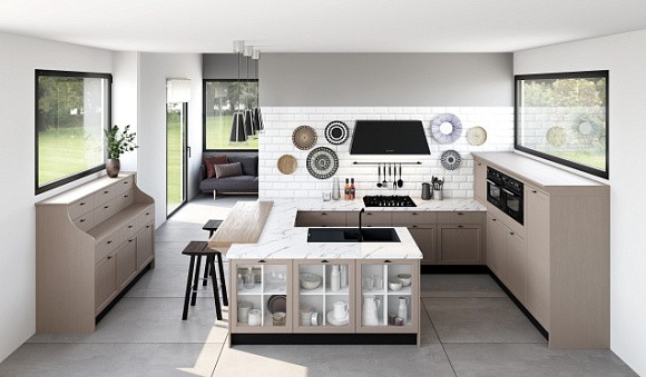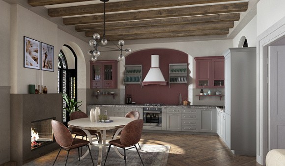 Кухни классика всегда остается в моде. Для них характерна симметричность линий, простота форм и роскошный декор. Фасады таких моделей декорируют патиной, завитушками, резьбой, растительными узорами, стеклянными и зеркальными вставками.