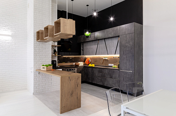 Функциональность здесь не спорит с эстетикой, а поддерживает её. На этой кухне вы не найдете лишних деталей — только характер, порядок и свободу быть собой.