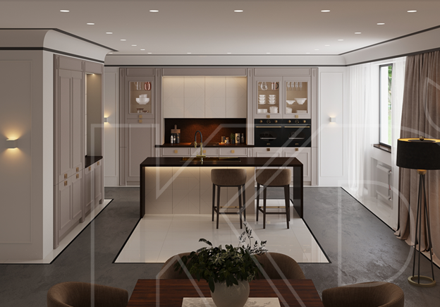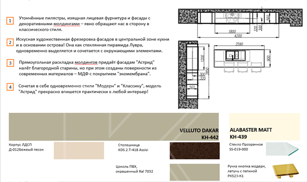 Дизайн кухни «Адриана» – это безграничность дизайнерской фантазии, сочетание сразу нескольких стилей: кухни классик, модерн.