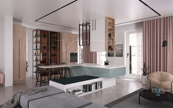 2. Зонируйте пространство с умом. По возможности вообще не разделяйте пространство. Лучше обратить внимание на расстановку мебели – поскольку на такой кухне будет происходить постоянное движение, изделия не должны мешать динамичной жизни.