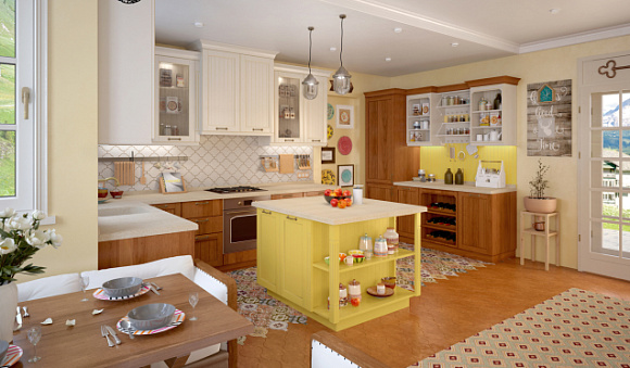 огромное разнообразие стилей — дизайнеры очень трепетно относятся к натуральной древесине и по этой причине предоставляют огромный выбор моделей кухонь на любой вкус;