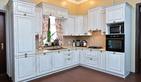 Широкий ассортимент. Кухонная мебель из древесины может иметь угловую, П-образную, линейную, островную или полуостровную планировку.