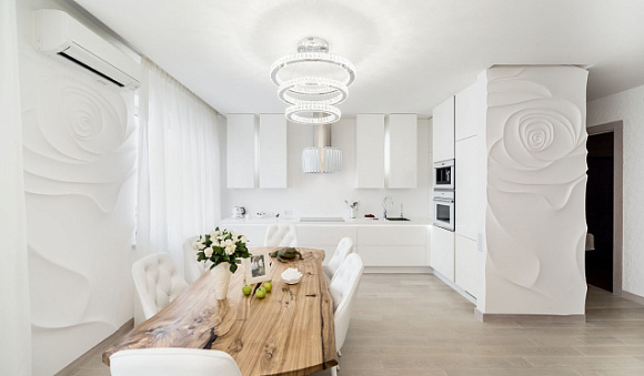 Стильное решение из серии 2 в 1 – кухня-гостиная, которая идеально впишется не только в однокомнатную квартиру, но и будет уместна в лаконичной обстановке: в студии, загородном коттедже, на даче, в мастерской, салоне и клубе.