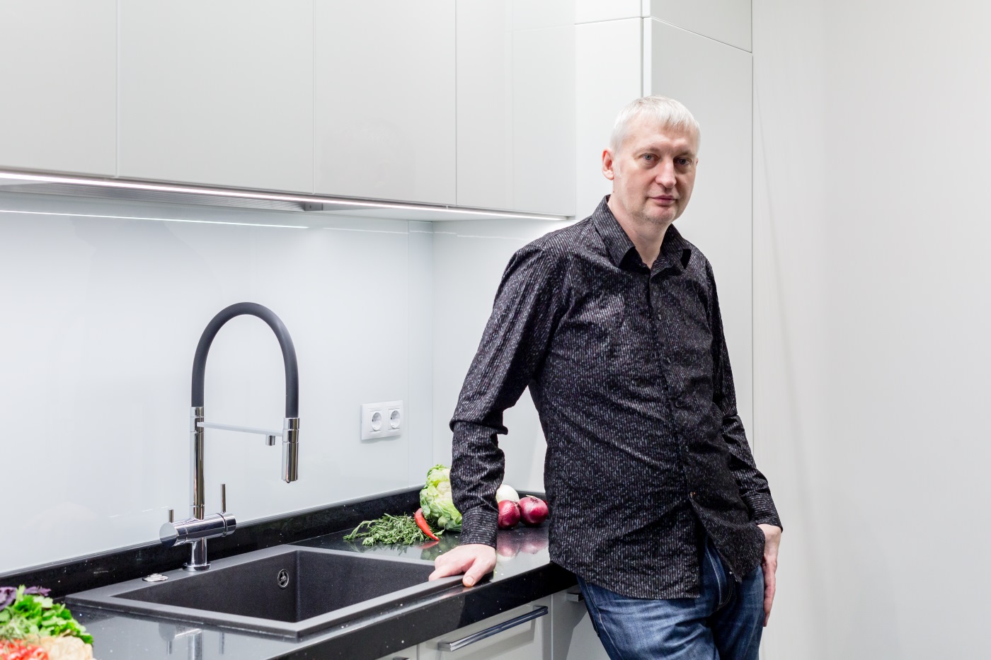 Кухонный гарнитур «Фаворит» стал настоящим произведением искусства в интерьере  VIP стилиста международного уровня Сергея Любимова. Сергей  работает  со звездами российской эстрады – Валерией, Анастасией Стоцкой, Любовью Успенской, Катей Лель. Он является чемпионом Европы по парикмахерскому искусству, участником LONDA TEAM Professional и топ стилистом бренда LONDA Professional. Сергей говорит:  «Мой клиент - это драгоценный камень, я только делаю огранку, нужно отсечь все лишнее, чтобы увидеть красоту человека!»  Так произошло и с кухонным гарнитуром «Фаворит». Сергей говорит, что впервые увидел эту кухню у своей подруги. Его поразила чистота форм и линий – «ничего лишнего». После этого сомнений не осталось: если заказывать новую кухню себе, то только в бренда «Кухонный Двор» и только модель «Фаворит». «Мы решили выбрать белый цвет – цвет чистоты и создали, как мне кажется,  произведение искусства. Когда кухня уже появилась, мы поняли, что она очень удобная, функциональная: мягкие доводчики, правильно и грамотно рассчитаны ящики, удобная форма открывания дверок. Кухня та, которая приносит радость, хорошее настроение в доме» - говорит Сергей. Фасады кухни выполнены из высококлассного современного гладкого MDF с инновационным  покрытием «ультраглянец». Особенность модели в том, что высота верхних шкафчиков равна 1 м 35 см! Эффектная, стильная, безукоризненная модель «Фаворит» стала тем самым драгоценным камнем  для интерьера, которым для Сергея являются его звездные клиенты.