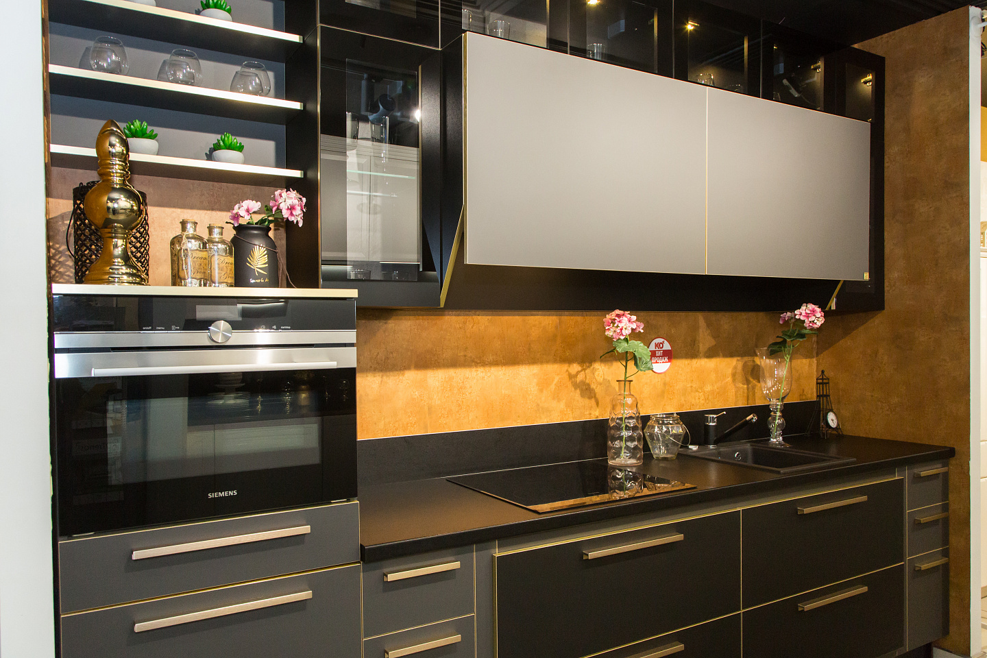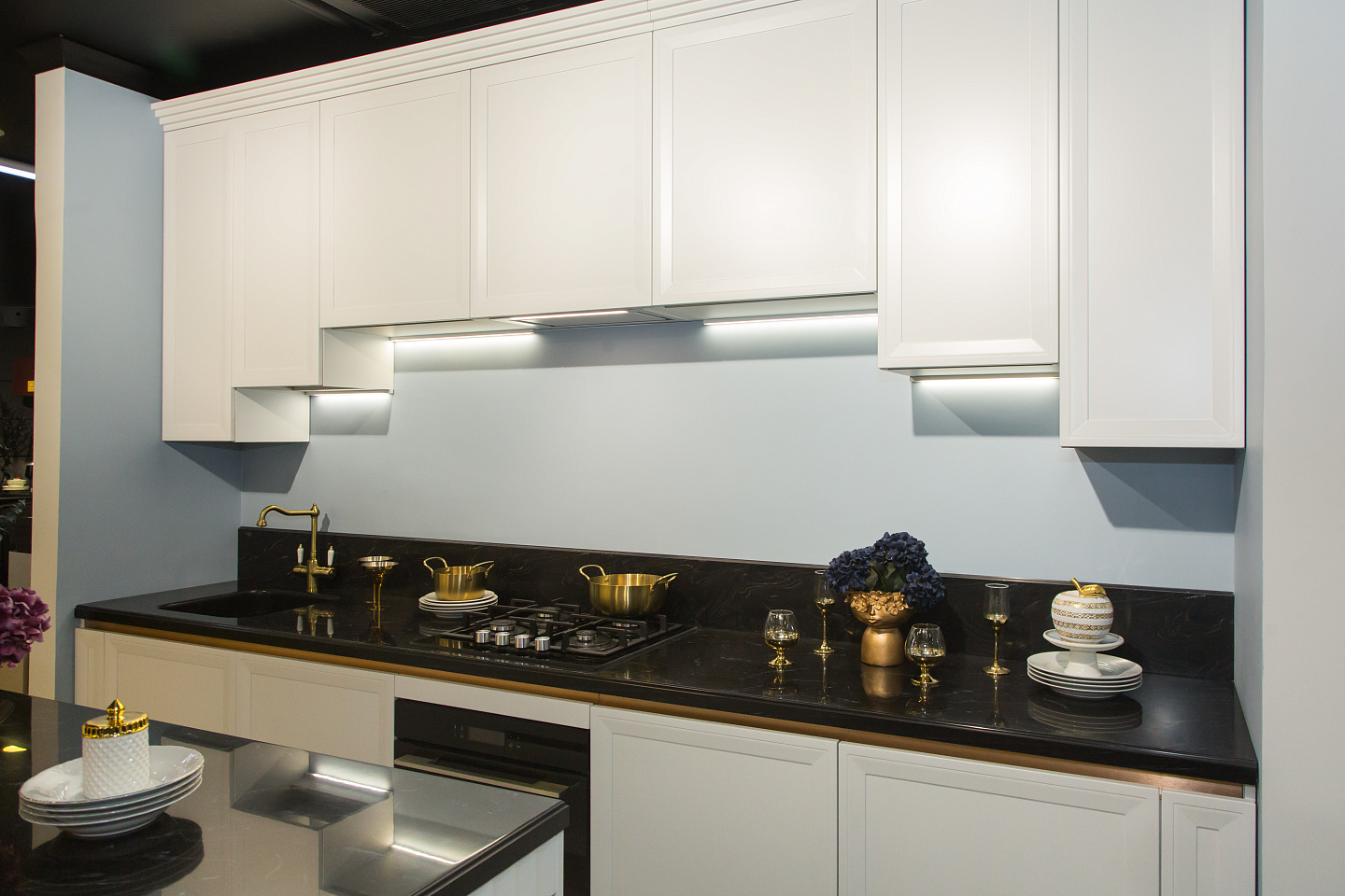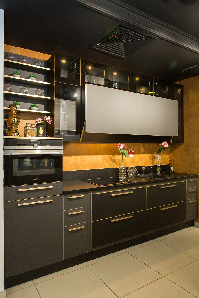 - Вместе с гарнитуром у нас вы можете заказать столешницу из ЛДСП, натурального или искусственного камня, а также встраиваемую бытовую технику Neff, Siemens, Bosch и других ведущих брендов.