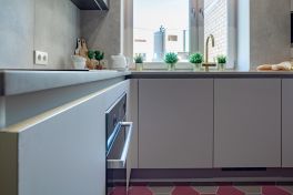 Зона 3 – сочный инжир. Сочности и комфорта хватит на всех! Кухня плавно перемещается в лаунж-зону, продолжаясь в фасадах цвета мякоти инжира. Эта часть комнаты просто создана для того, чтобы встречать гостей и наслаждаться вкусными блюдами!